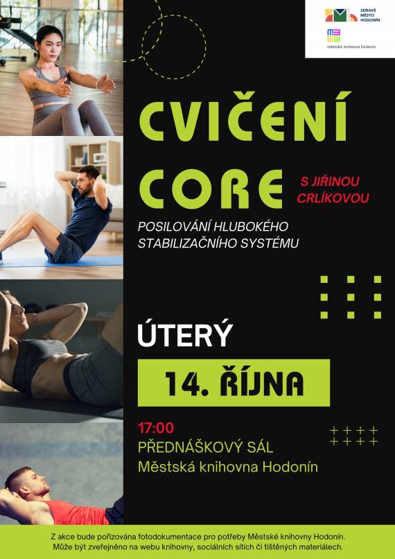 Posilování hlubokého stabilizačního systému CORE, které pomáhá zlepšit držení těla, stabilitu i celkovou fyzickou kondici pod vedením lektorky Jiřiny Crlíkové.