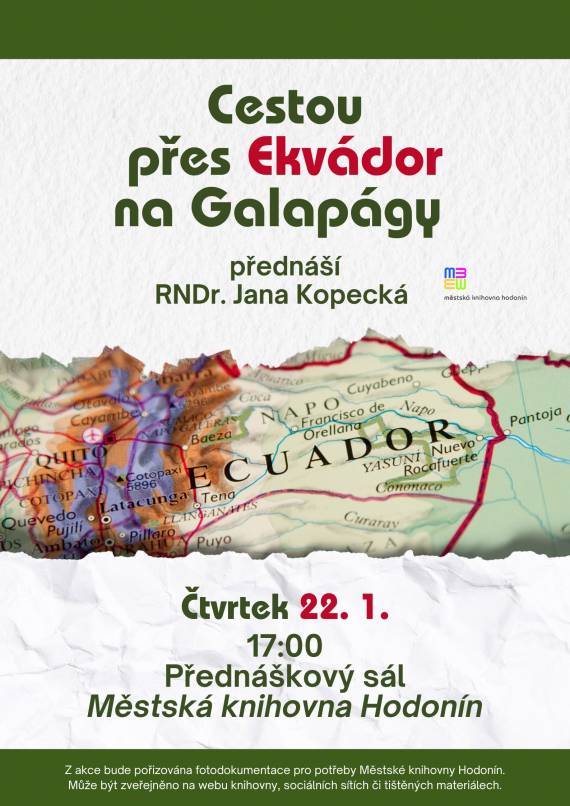 Přijďte se seznámit s Ekvádorem – fascinující zemí ležící přímo na rovníku.Přednáška RNDr. Jany Kopecké.