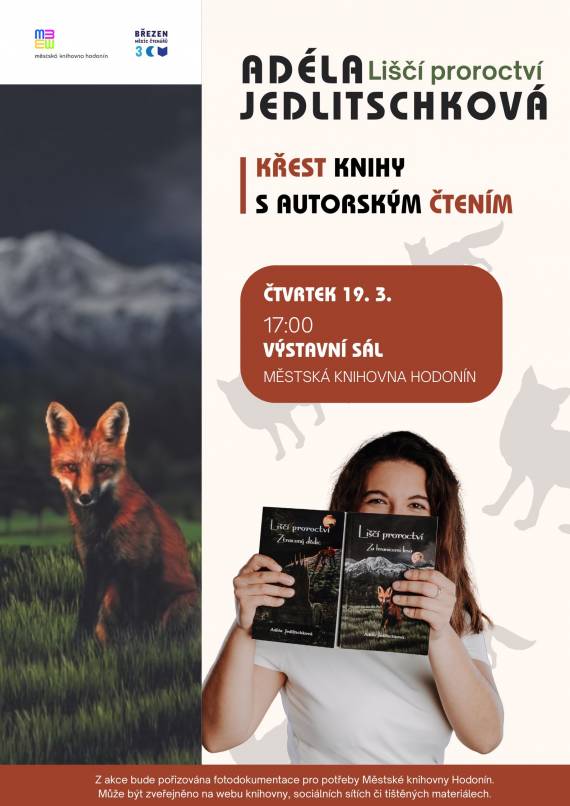 Zveme vás na křest knihy autorky Adély Jedlitschkové, který bude spojený s krátkým autorským čtením a povídáním. Společně s ilustrátorkou představí vizuální podobu světa i jeho postav. Kmotrou knihy se stane Klára Odrůšková, herečka Slováckého divadla.